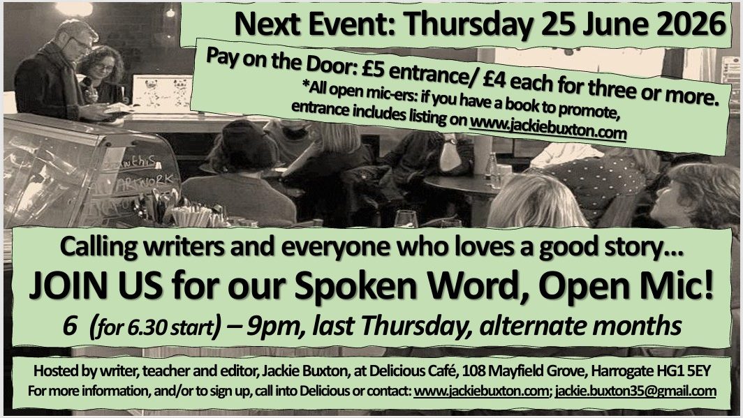 Contact Jackie (below) to sign up as an open micer at our next Open Mic
